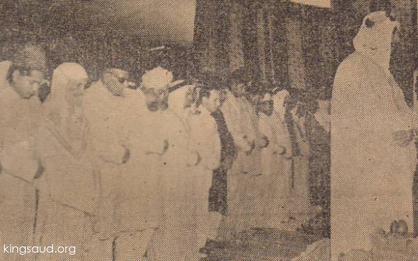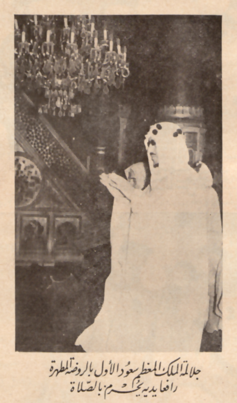 King Saud leads the congregation in the Prophets Mosque after he called Sheikh Abdul Aziz bin Saleh