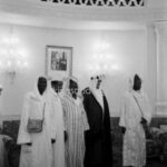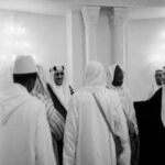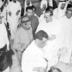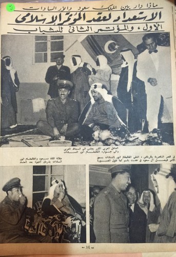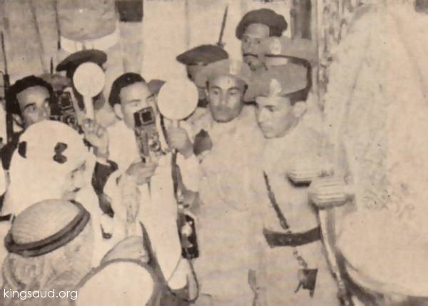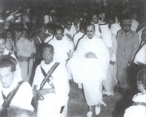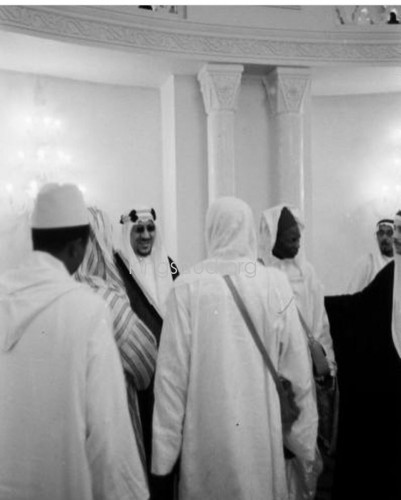 King Saud celebrating with the Muslim Delegates in Al Madina Al Monwara the termination of the Expansim of the prophets Mosque project 1955