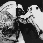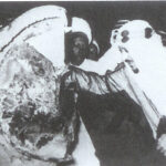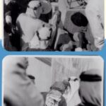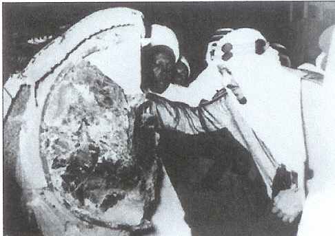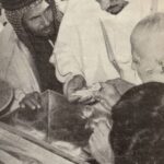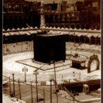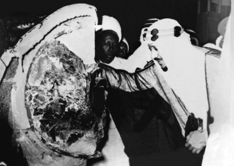King Saud kissing The Black Stone subsequent to replacing the old silver gridle with a new one Makkah 4th of April 1955