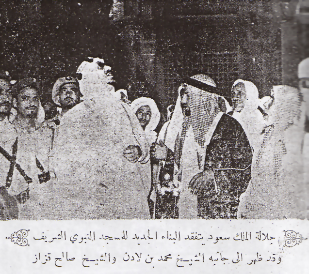 King Saud inspecting the expansion of the Prophets Mosque with Sheikh Mohammed bin Laden