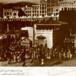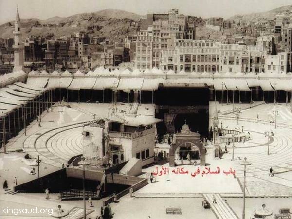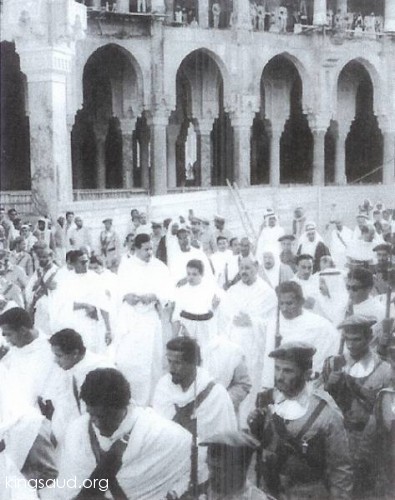 King Saud exittng from King Saud Gate at The Holly Mosque of Makkah 1955