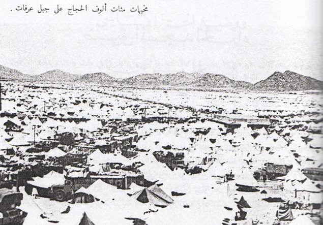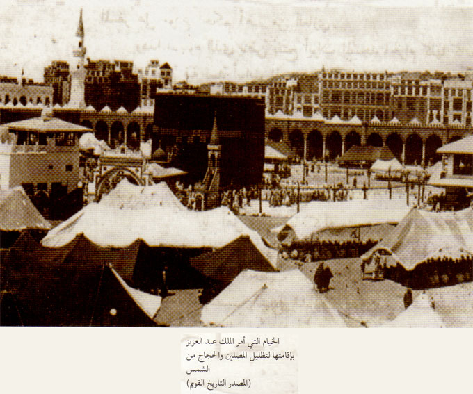 The tents King Abdulaziz ereckd to prolect prayers and people from the sun ( source The Old History ) 1954