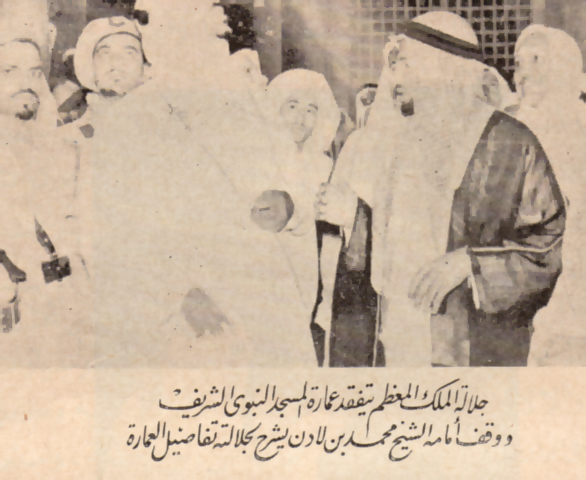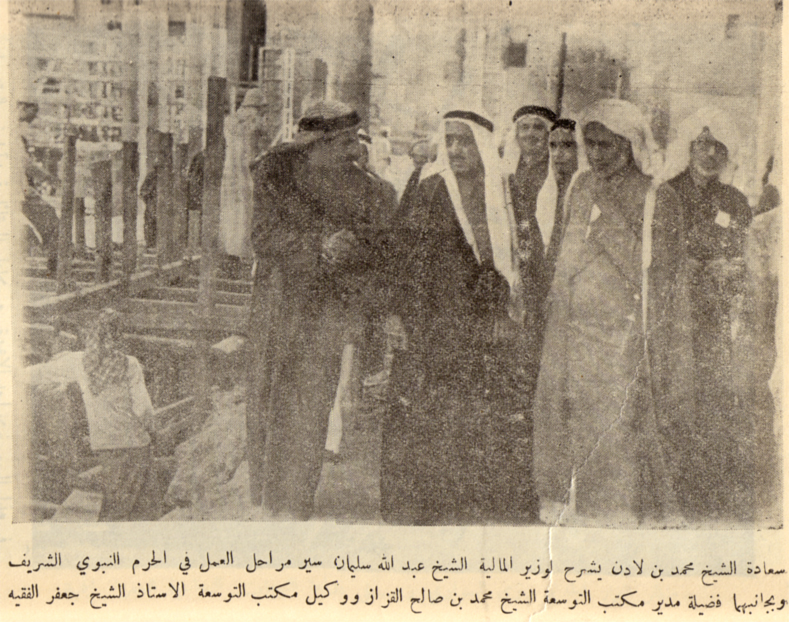 Sheikh Abdullah Al-Sulaiman Minister of Finance and Mohammed Sorour Al-Sabban Advisor to King Saud in front of the expansion of the Prophets Mosque