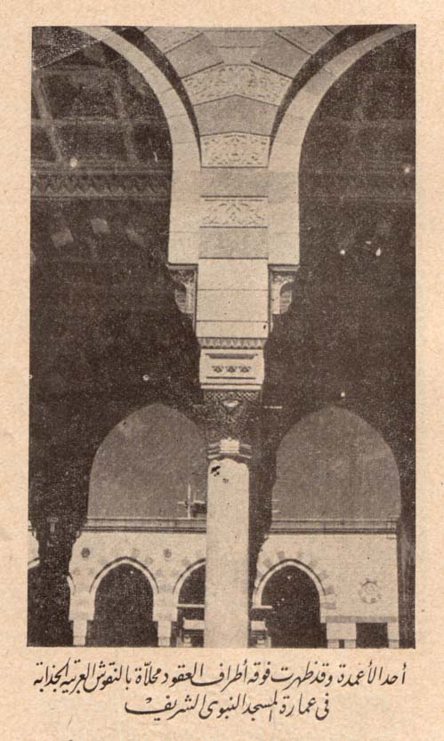 Colomns of the Prophet Mosque adorned by beautiful brass tobs 1955