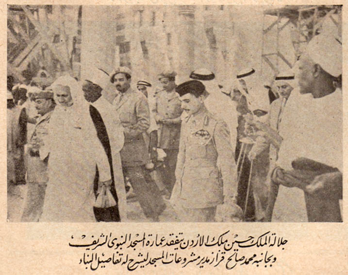 King Hussein of Jordon visiting construction of the Prophet Mosque in Madina