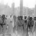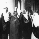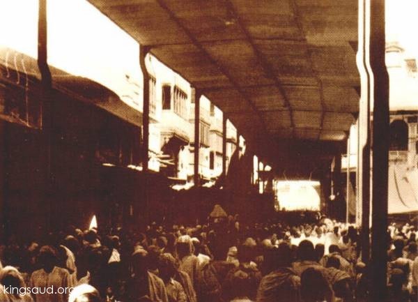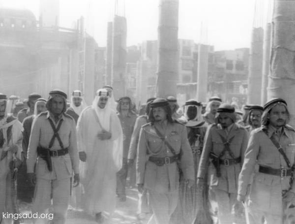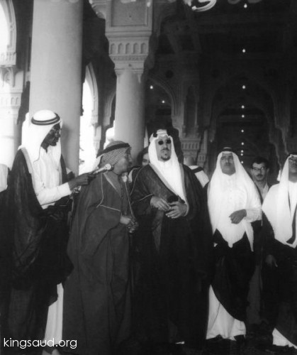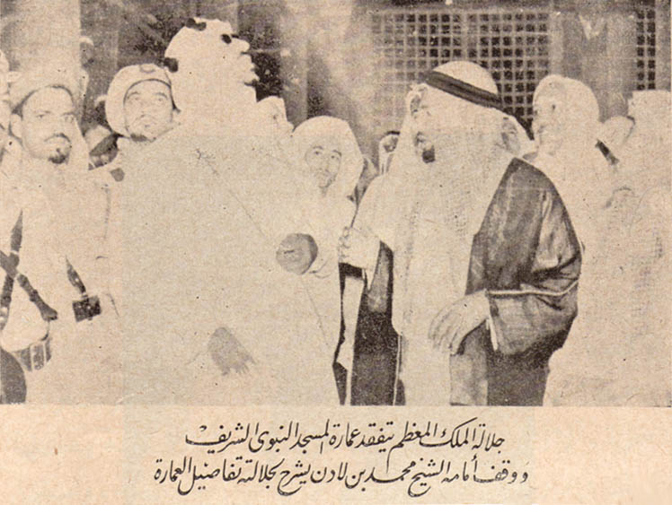 King Saud during his inspection tour of the new expansion of the prophets Mosque in AL Madina Al Monawara 1954