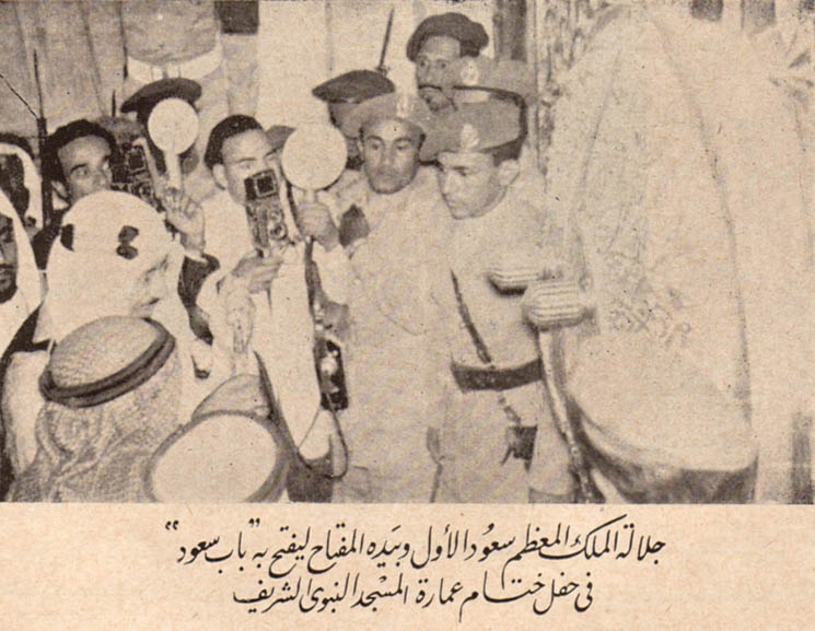 King Saud holds the key to Inaugurate the Gate of Saud after the completion of the expansion project for the Prophets Mosque - 1956