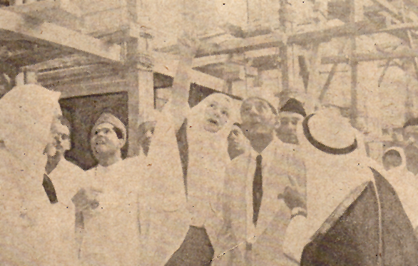 King Saud inspecting Expansion project of the Holy Mosque in Mecca 1955 with Muhamed bin Laden