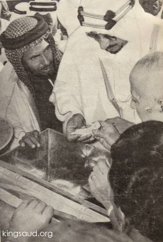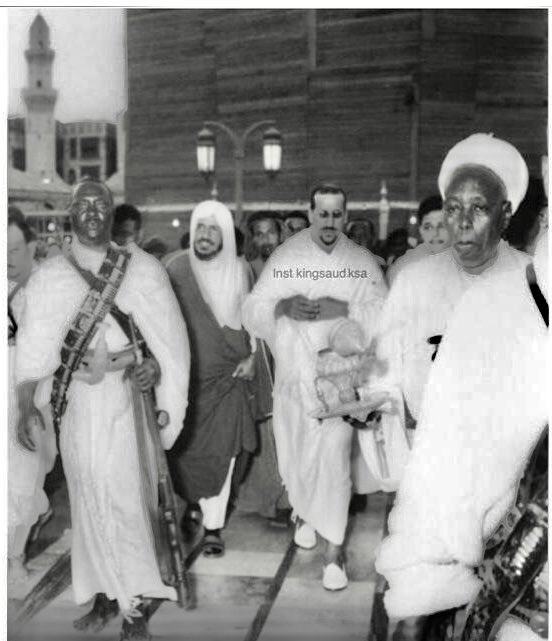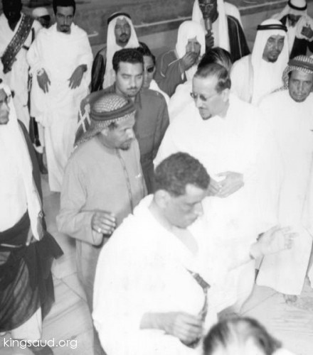 King Saud at the holy Mosque in Makkah with his son Prince Mohammed bin Saud