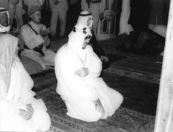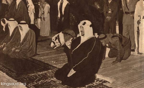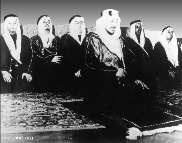 Here is were King Saud leads the prayer inside the palace with a group of men of his entourage