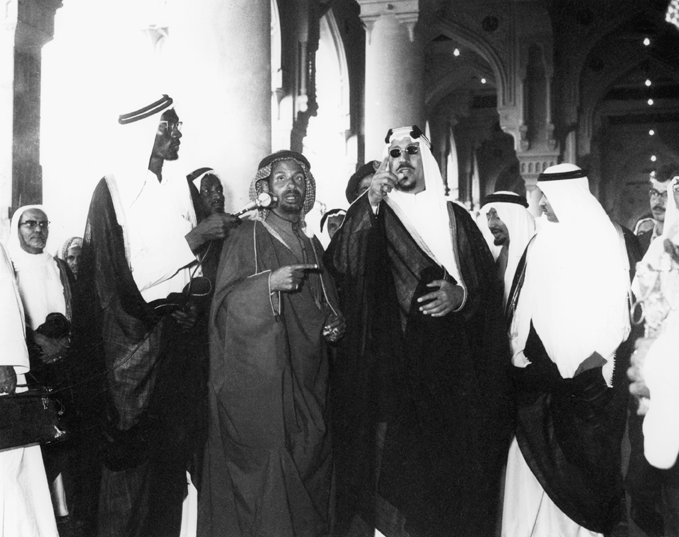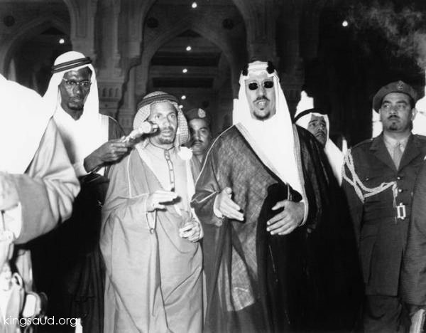 King Saud accompanied by Sheikh Mohammed bin Laden