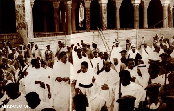 King Saud inspecting the expansion project of Makkah holy Mosque - 1955