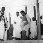 King Saud during Hajj and standing beside his private secretary in 1374 (e) 1955