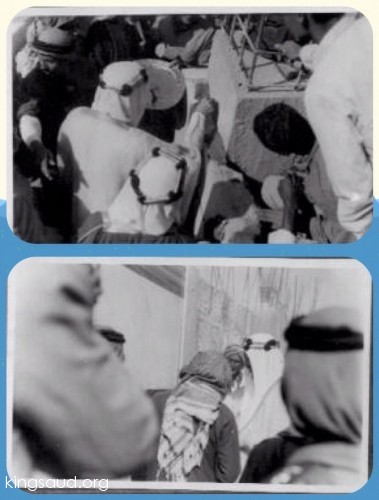 King Abdulaziz is honored to wash the holy Kaaba with Zamzam mixed with rose water and was accompanied with his son Crown Prince Saud bin Abdulaziz