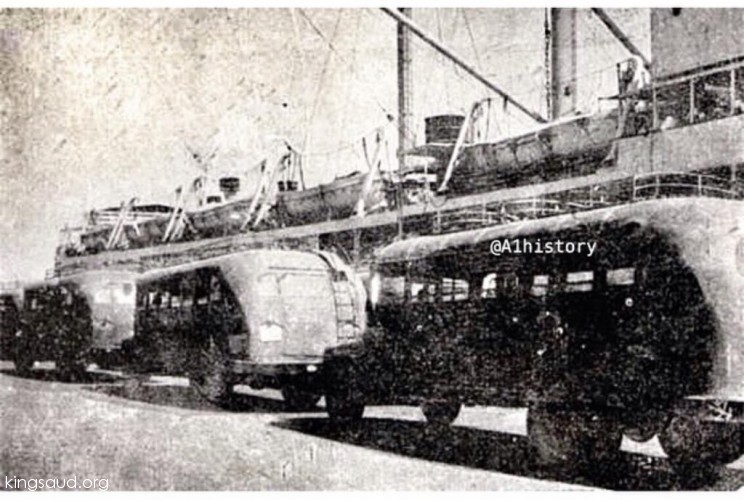 Buses waiting for pilgrims at Jeddah Islamic Port during the reign of King Saud - 1955