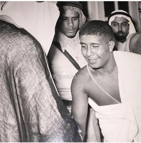 King Saud during Omrah with sons Prince Abdullah Prince Thamir Prince Badr and Prince Faisal bin Tirki 1955