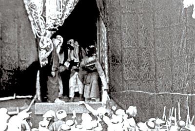 A group of worshippers waitting to enter the KAABAH during its washing cermonyin 1953