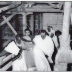 King Saud during his inspection of the expansion in the Holy Mosque and Sheikh Mohammed bin Laden 1374 AH 1955 AD