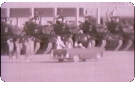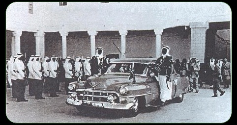 Royal Guard armored vehicles of the Kingdom of Saudi Arabia performing a display before King Saud—may God have mercy on him.