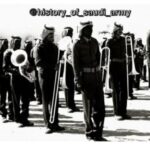 Saudi Army personnel preparing to perform a military display before King Saud—may God have mercy on him.