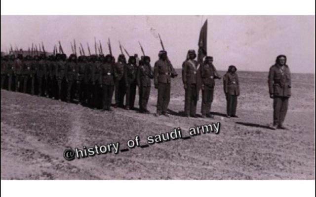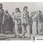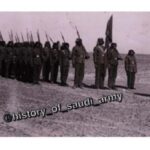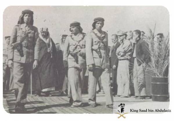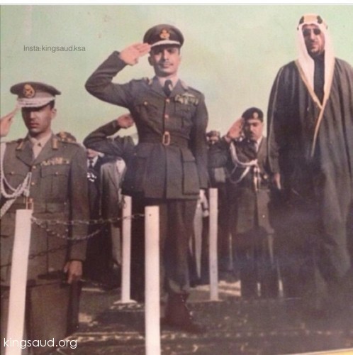 King Saud, Supreme Commander of the Armed Forces, with the regular Saudi Army alongside the Saudi Air Force and armored units in 1954.