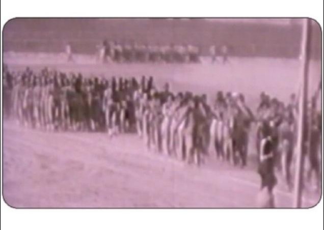 Saudi military forces performing a display before King Saud—may God have mercy on him.