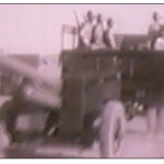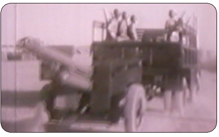 Royal Guard troop‑transport vehicles accompanied by field artillery during the reign of King Saud.